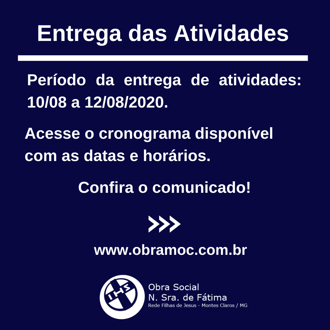 CRONOGRAMA PARA ENTREGA DAS ATIVIDADES