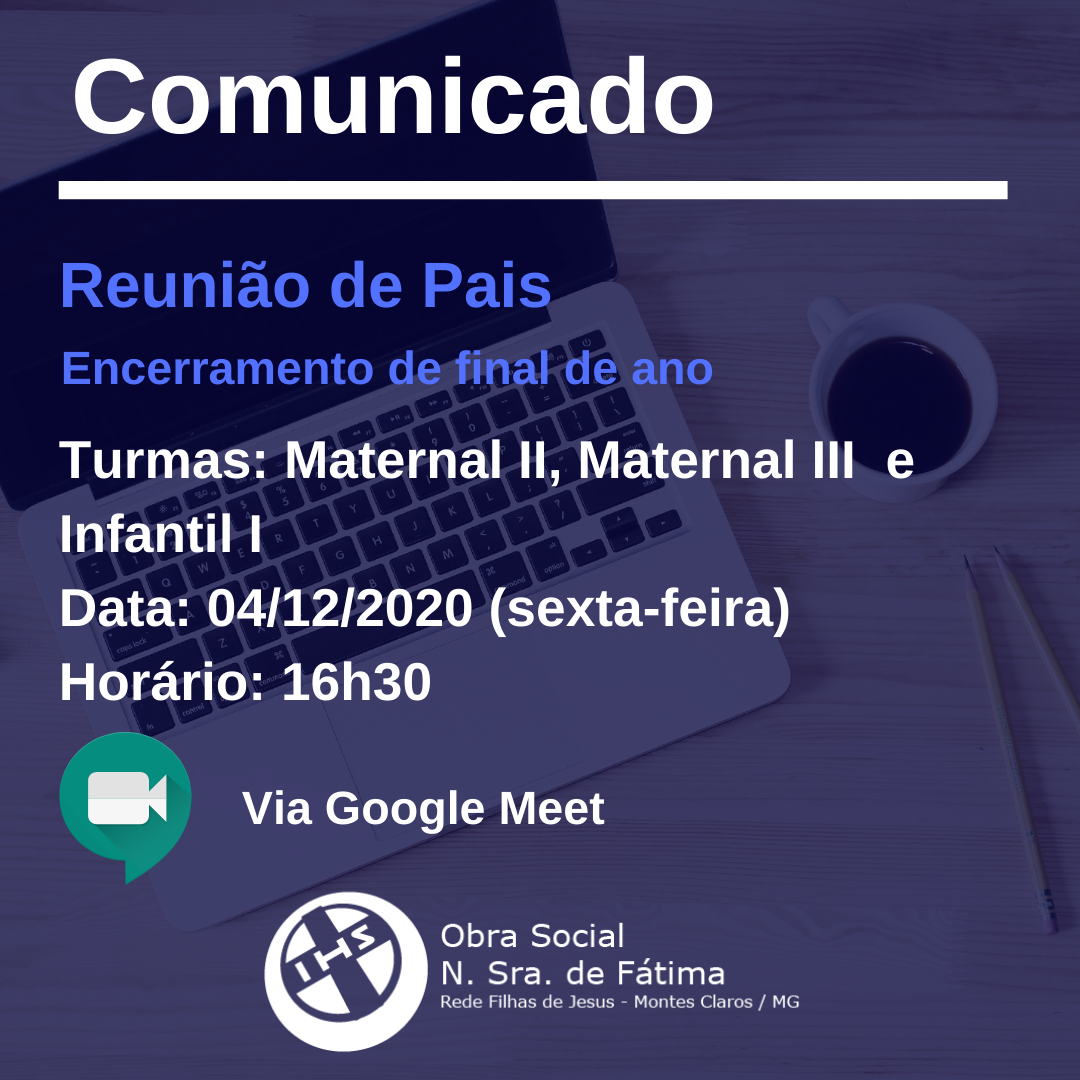 Reunião de pais de encerramento de fim de ano para as turmas do Maternal II, Maternal III e Infantil I.