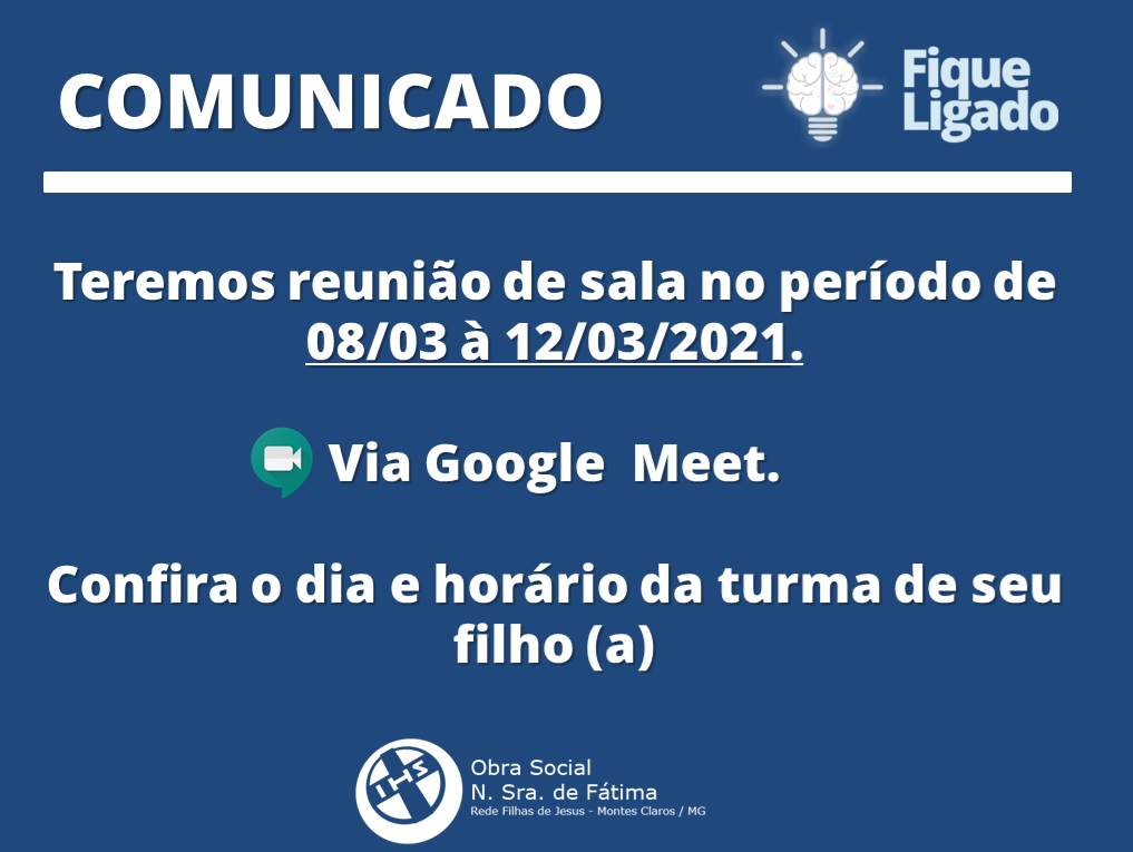 Teremos reunião de sala no período de 08/03 à 12/03/2021.