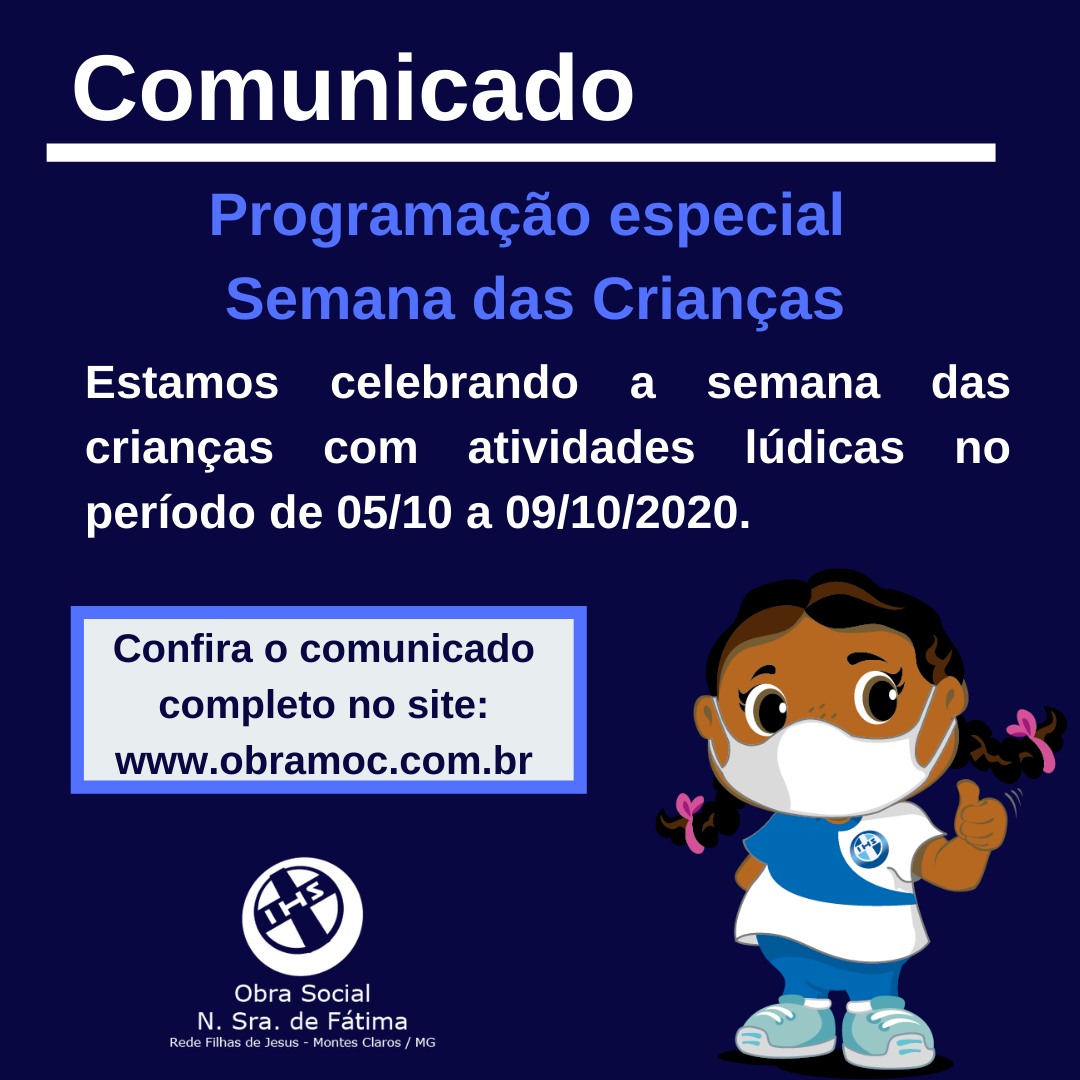 PROGRAMAÇÃO SEMANA DA CRIANÇA DA OBRA SOCIAL NOSSA SENHORA DE FÁTIMA – 2020