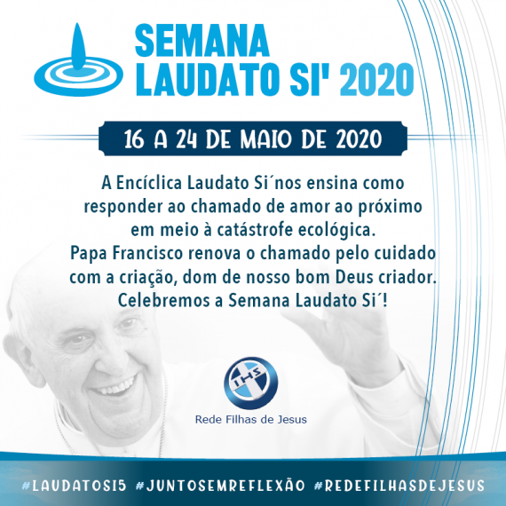 A Igreja celebra, entre os dias 16 e 24 de maio de 2020, a Semana Laudato Si, em comemoração aos 5 anos da publicação da Encíclica de mesmo nome, que trata sobre ecologia integral e meio ambiente.